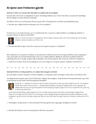 I kan om nødvendigt forklare, at »Herren kalder mænd og kvinder til at tjene i Kirken i dag gennem inspirerede opfordringer fra sine tjenere. Disse muligheder for at tjene er kendt som kaldelser« (Kirkens Håndbog: Tjeneste i Jesu Kristi Kirke af Sidste Dages Hellige, 30.0, Evangelisk Bibliotek).