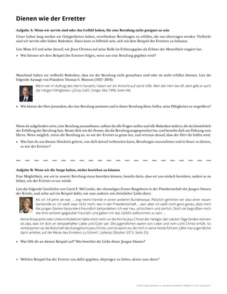 Befasse dich mit einem oder mehreren Beispielen auf dem Arbeitsblatt, von denen du meinst, dass sie dir helfen könnten, wenn du überlegst, eine Berufung in der Kirche des Erretters anzunehmen und zu erfüllen.