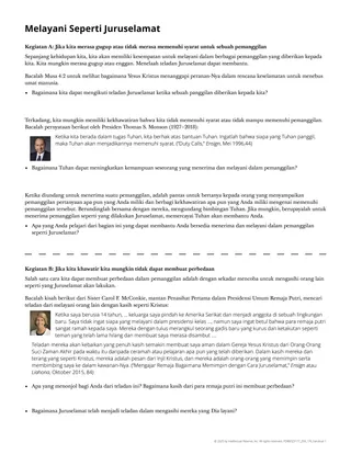 Kegiatan berikut dapat membantu siswa mengatasi keraguan yang mungkin mereka miliki mengenai melayani dalam pemanggilan atau mencari cara-cara mereka dapat meningkatkan upaya mereka untuk memenuhi pemanggilan. Mereka dapat menyelesaikannya secara perorangan atau dalam kelompok-kelompok kecil: