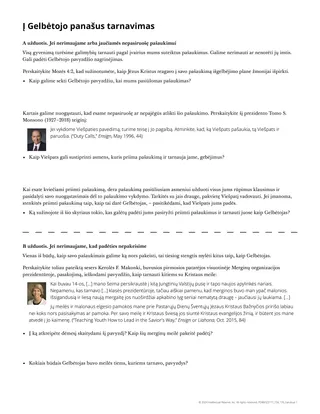 Kiekvienam mokiniui skirkite vieną ar daugiau užduočių, pateiktų dalijamojoje medžiagoje „Į Gelbėtojo panašus tarnavimas“.