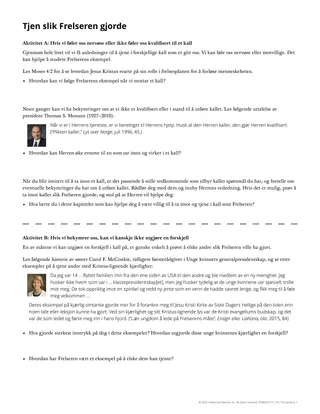 Gi hver elev én eller flere av aktivitetene på utdelingsarket: “Tjene slik Frelseren gjorde”.