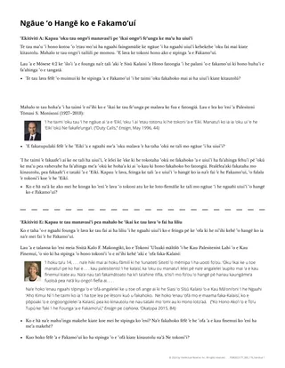 “Ko Hono Tali mo Fakahoko ʻo e Ngaahi Uiuiʻí: Ko e Ngāue ʻo Hangē ko e Fakamoʻuí,” Fuakava Motuʻá – Tohi Lēsoni ʻa e Faiako Seminelí