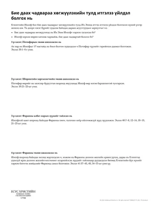 Иосефын цэдгийг судлахад нь суралцагчдад туслахын тулд та дагалдах тараах материалыг өгч болно. Та бүлэг бүрд өөр өөр хэсгийг оноож, тараах материал дээрх хоёр асуултад хариулахад тэднийг урьж болно.