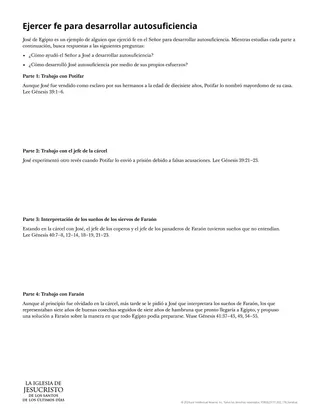En esta lección, los alumnos leerán parte del relato de José en Egipto, en Génesis. Antes de estudiarlo podría mostrar el video “Abasteceré a mis santos” (3:08) desde el comienzo hasta 1:52 y pedir a los alumnos que busquen evidencias tanto del poder del Señor como de Su deseo de ayudarnos cuando ejercemos la fe en Él para desarrollar autosuficiencia. Hacer esto puede ayudar a los alumnos a reflexionar sobre el deseo del Señor de ayudar a José y Su poder para bendecirlo en sus circunstancias difíciles.