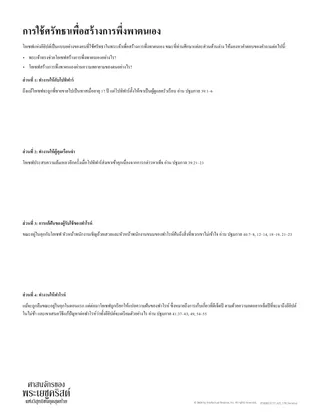 ท่านอาจให้ดูการประเมินตนเองต่อไปนี้ รวมถึงคําแนะนําและประเภทต่างๆ เพื่อช่วยให้นักเรียนใคร่ครวญถึงความต้องการความช่วยเหลือจากพระผู้ช่วยให้รอดในการพึ่งพาตนเองมากขึ้น