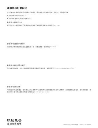 「運用對耶穌基督的信心培養自立:主能夠幫助我們努力自立」,舊約福音進修班教師用本