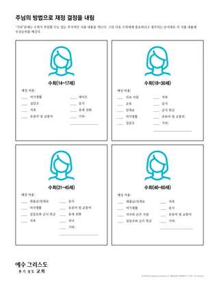학습 일지의 한쪽 상단에 다음을 적는다. 나는 …(함)으로써 주님의 방법으로 재정적인 결정을 내릴 수 있다.