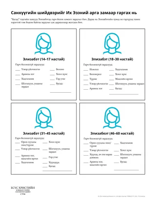 Дараах жишээ болон зааврыг үзүүл. Суралцагчид Элизабэтийн зардлыг эрэмбэлэхээс гадна та тараах материал дээр өгөгдсөн насны ангилал бүрдээ хийсэн Элизабэтийн цалингийн мөнгөн дүнг суралцагчдад өгч болно. Дараа нь суралцагчид түүний боломжит төсвөөс үндэслэн тухайн зардлыг төсөвлөх дадлага хийж болно.