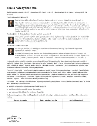 Nebeský Otec nám dal fyzické tělo v rámci svého plánu, jehož cílem je, abychom se stali takovými, jako je On. (Viz „Rodina – prohlášení světu“, ChurchofJesusChrist.org.) To, jak se o své tělo staráme, však neovlivňuje pouze naši budoucnost, nýbrž i to, jak se cítíme nyní. Tato lekce může studentům pomoci pochopit, jaký vliv mají naše rozhodnutí na naše fyzické a duševní zdraví.