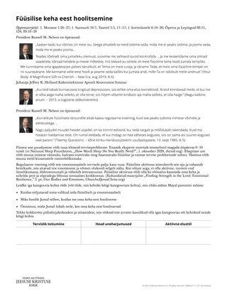 Taevane Isa andis meile füüsilise keha osana Tema plaanist saada Tema-sarnaseks. (Vt „Perekond: läkitus maailmale”, ChurchofJesusChrist.org.) Kuid see, kuidas me oma keha eest hoolitseme, ei mõjuta ainult meie tulevikku, see mõjutab ka meie praegust enesetunnet. See õppetund aitab õpilastel mõista, kuidas meie valikud mõjutavad meie füüsilist ja emotsionaalset tervist.