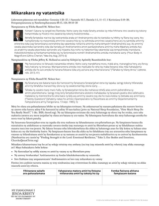 Azonao atao ny mamarana amin’ny fijoroana ho vavolombelona anananao momba ny Ray any An-danitra sy ny drafitry ny famonjeny ary ireo fitahiana hitanao avy amin’ny fiezahana hanao safidy tsara.