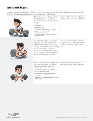 Alla upplever vi stress och oro eller ångest. De här känslorna kan hjälpa oss att utföra dagliga uppgifter och möta livets utmaningar. Men långvarig stress, oro och ångest kan påverka oss negativt. Tack och lov har Frälsaren lovat oss sin hjälp och sin frid (se Johannes 14:27). Den här lektionen kan hjälpa eleverna att öva på att hantera stress och ångest genom färdigheter som hjälper oss att ta emot kraft från Frälsaren.