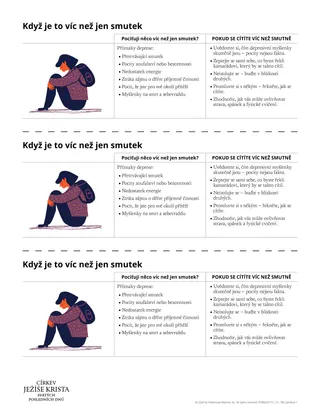 Pro studenty by mohlo být přínosné přečíst si poselství presidenta Jeffreyho R. Hollanda o tom, jak pomáhat lidem potýkajícím se s depresí. Zvažte možnost pustit jim video „Mental Health: Compassion for Those Who Struggle“ (2:26), které je k dispozici v knihovně Gospel Library. Ve videu nám president Holland připomíná, že závažnou depresi nemůže vyřešit sebepevnější vůle. Klíčem k uzdravení je v případě problémů s duševním zdravím vyhledání odborné pomoci spolu s podporou a soucitem ostatních.