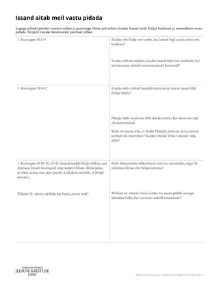 Et aidata õpilastel ära tunda viise, kuidas Issand aitas Eelijat ning saab aidata neilgi kurbuse ja masenduse tunnetega toime tulla, andke igale õpilasele jaotmaterjal „Issand aitab meil vastu pidada”. Paluge õpilastel töötada iseseisvalt, koos paarilise või rühmaga ja järgida käsilehe juhiseid.