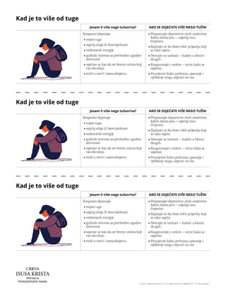 Nebeski Otac znao je da će ovaj smrtni život donijeti trenutke tuge, obeshrabrenja, razočaranja i depresije. Poslao je svojeg Sina da iskusi sve što ćemo mi pretrpjeti, s obećanjem da nam njegova moć može pomoći pronaći počinak (vidi Matej 11:28–30). Ova lekcija može pomoći polaznicima razumjeti kako će im Nebeski Otac i Isus Krist pomoći izdržati osjećaje tuge i depresije.