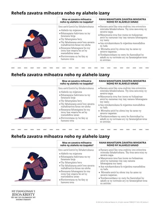 Manoratra zavatra nianaranao na tsapanao androany izay afaka manampy anao hiantehitra amin’ny Ray any An-danitra sy i Jesoa Kristy rehefa mahatsapa ho malahelo na kivy ianao.