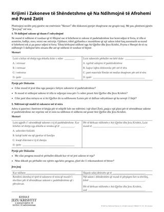 Fletushka “Krijimi i Zakoneve të Shëndetshme që na Ndihmojnë të Afrohemi më Pranë Zotit” mund t’i ndihmojë nxënësit të krijojnë një skenar për dikë që i zëvendëson zakonet e pashëndetshme me modele të mira. Më pas, ata mund ta zbatojnë këtë zotësi në jetën e tyre. Nxënësit mund të punojnë me fletushkën si klasë, në grupe të vogla ose më vete.