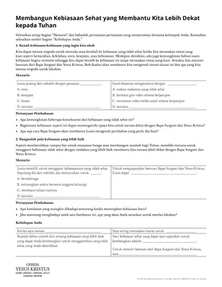 Selebaran “Membangun Kebiasaan Sehat yang Membantu Kita Lebih Dekat kepada Tuhan” dapat membantu siswa membuat skenario tentang seseorang menggantikan kebiasaan tidak sehat dengan pola yang baik. Mereka kemudian dapat menerapkan keterampilan ini ke dalam kehidupan mereka sendiri. Siswa dapat mengerjakan selebaran tersebut bersama kelas, dalam kelompok-kelompok kecil, atau sendiri-sendiri.