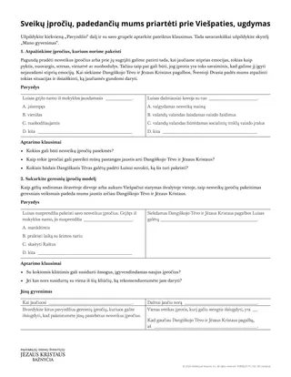 Dalijamoji medžiaga „Sveikų įpročių, padedančių mums priartėti prie Viešpaties, ugdymas“ gali padėti mokiniams sukurti pavyzdį, kaip kas nors pakeičia nesveikus įpročius gerais pavyzdžiais. Tada jie gali pritaikyti šį įgūdį savo gyvenime. Mokiniai gali atlikti dalijamosios medžiagos užduotis su klase, mažose grupėse arba savarankiškai.