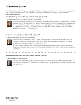 Mokiniai gali paaiškinti, kad, nors išsilavinimo įgijimas reikalauja daug pastangų, disciplinos ir pasiaukojimo, jis gali suteikti Viešpaties palaiminimų, įskaitant didesnę laisvę, galimybes ir tobulėjimą.