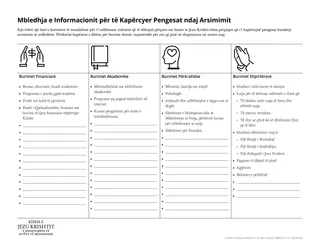 Nxënësit mund të përdorin fletushkën “Mbledhja e Informacionit për të Kapërcyer Pengesat ndaj Arsimimit” dhe mësimet që mësuan nga kapitulli te Jozueut 3 për t’i ndihmuar t’u përgjigjen pyetjeve më poshtë në lidhje me skenarin që morën. Ata mund t’i shkruajnë përgjigjet e tyre në pjesën e pasme të letrës së skenarit.