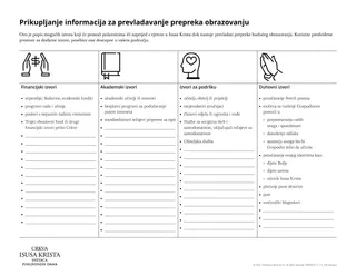 Gospodin je podučio da je »Božja… slava razumnost« (Nauk i savezi 93:36). Uz to, vođe Crkve opetovano su podučavali o važnosti obrazovanja. Međutim, ponekad prepreke otežavaju nastavak našeg obrazovanja. Ova lekcija može pomoći polaznicima prepoznati dostupne izvore za prevladavanje prepreka u unapređenju njihova obrazovanja.