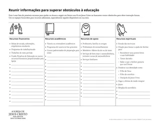 Em uma aula recente do seminário, a professora de Luan citou algumas declarações de líderes da Igreja sobre a importância da educação após o ensino médio. Luan acredita nesse conselho e quer segui-lo. Mas, ao pensar no futuro, seus pensamentos se voltam para obstáculos que podem impedi-lo de alcançar seu objetivo.