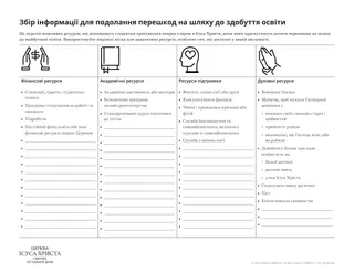 Господь навчав, що “слава Бога — це розум” (Учення і Завіти 93:36). Крім того, церковні провідники неодноразово навчали про важливість освіти. Однак іноді перешкоди ускладнюють продовження нашої освіти. Цей урок може допомогти студентам визначити наявні ресурси для подолання перешкод на шляху до отримання подальшої освіти.