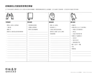 學生可以使用「收集資訊以克服接受教育的阻礙」講義,以及他們從約書亞記第3章所學到的教訓,來幫助他們針對他們所收到的情境回答下列問題。他們可以將答案寫在情境紙的背面。