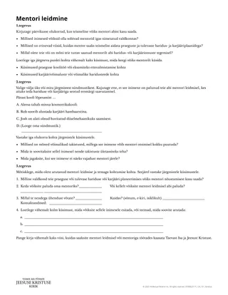 Kui te oma elu üle järele mõtlete, siis kuidas on usaldusväärsed mentorid teid aidanud? Pühakirjalood Moosesest ja Joosuast kuni Eeli ja Saamuelini illustreerivad mentorluse suhte väärtust. Need lood suunavad meid meie täiuslike mentorite, Taevase Isa ja Jeesuse Kristuse poole. See õppetund võib aidata õpilastel teha plaani, kuidas leida potentsiaalsed haridus- ja karjäärinõustajad ning nendega ühendust võtta.