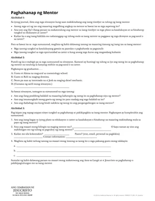 Ang sumusunod na aktibidad ay maaaring makatulong sa mga estudyante na tumukoy at gumawa ng plano upang makipag-ugnayan sa mga potensyal na mentor.