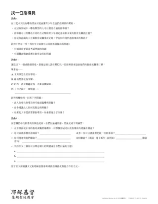 當你回顧生活時,值得信賴的導師是如何幫助你的?從摩西和約書亞,到以利和撒母耳,經文中的故事說明了導師關係的價值。這些故事將我們指向我們完美的導師——天父和耶穌基督。本課能幫助學生擬定計畫,找到潛在的教育和職業導師,並與他們建立聯繫。
