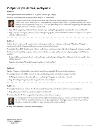 Mokydamiesi ir stengdamiesi išplėsti savo žinias ir supratimą apie tiesą susidursime su kliūtimis. Mes neturime šių iššūkių įveikti vieni. Dangiškajam Tėvui ir Jėzui Kristui rūpime mes ir mūsų pažanga ir Jie nori mums padėti mokantis mokykloje. Ši pamoka gali padėti mokiniams įtraukti Viešpatį į mokymąsi.