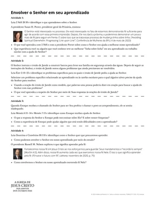 À medida que os alunos disserem suas ideias, ajude-os a identificar um princípio como ao envolvermos o Senhor em nosso aprendizado, Ele vai magnificar e fortalecer nossos esforços.