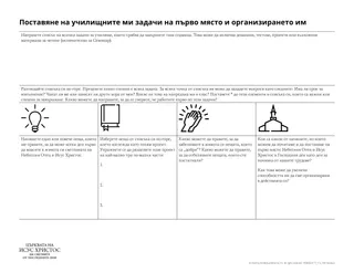 За да помогнете на учениците да оценят силните и слабите си страни в организирането на училищните задачи, бихте могли да покажете следните указания. Някои от учениците ви може да се чувстват обезсърчени, докато попълват тази самооценка. Уверете ги, че като Божии чеда, Той ни обича, проявява търпение към нашето израстване и желае да ни помага да ставаме по-добри.