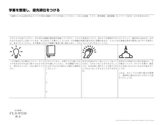 生徒がこれらのスキルを練習するのを助ける方法の一つは,資料「学校の勉強を整理して,優先順位をつける」のコピーを生徒に配布することです。