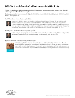 Vytvořte osnovu, kterou by bylo možné použít pro tříminutový až pětiminutový proslov na téma důležitost poslušnosti při sdílení Spasitelova evangelia s druhými.
