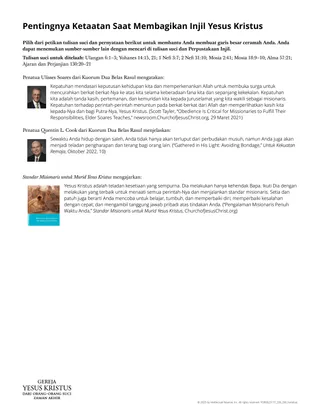 Tulisan suci mengenai kepatuhan dan bagaimana itu dapat diterapkan dalam berbagi Injil Yesus Kristus.