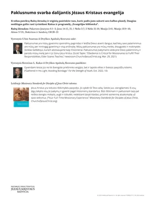 Raštų ištrauka apie paklusnumą ir kaip ją galima taikyti dalijimuisi Jėzaus Kristaus evangelija.