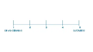 提示された目盛りを使って,以下の各文を自分がどの程度その通りだと思うかを評価してください。