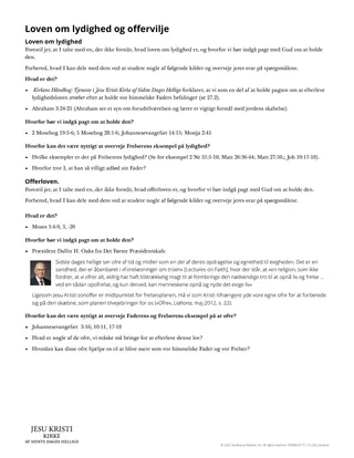 Vor himmelske Fader elsker alle sine børn. En af de måder, hvorpå vor himmelske Fader viser sin kærlighed, er ved at indbyde sine børn til at indgå pagter med ham i templet. Disse pagter omfatter vores løfte om at adlyde lydighedsloven og offerloven. Denne lektion kan hjælpe eleverne til at forstå lydighedsloven og offerloven, som vi indgår pagt om at holde i begavelsen.