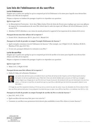 Le document à distribuer, « Les lois d’obéissance et de sacrifice », est conçu pour permettre aux apprenants d’approfondir leur compréhension de ces lois. Voici différentes façons de compléter ce document :