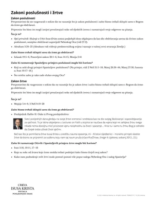 Nebeski Otac voli svu svoju djecu. Jedan od načina na koji Nebeski Otac pokazuje svoju ljubav jest pozivanjem svoje djece da sklope saveze s njim u hramu. Ti savezi uključuju naše obećanje da ćemo biti poslušni zakonu poslušnosti i zakonu žrtve. Ova lekcija može pomoći polaznicima razumjeti zakone poslušnosti i žrtve za koje tijekom podarivanja sklapamo savez da ćemo ih obdržavati.
