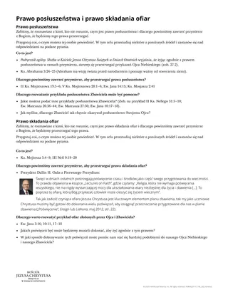 Poniższa ulotka pt. „Prawo posłuszeństwa i prawo składania ofiar” ma na celu pomóc uczniom pogłębić ich zrozumienie tych praw. Poniżej przedstawiono kilka sposobów, w jakie uczniowie mogą wypełnić ulotkę: