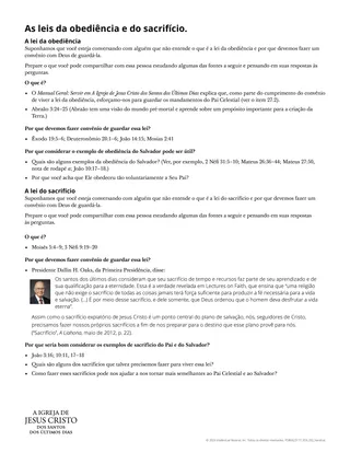 O material complementar “As leis da obediência e do sacrifício” destina-se a ajudar os alunos a aprofundar seu entendimento dessas leis. A seguir estão algumas maneiras como os alunos podem realizar a atividade do material complementar: