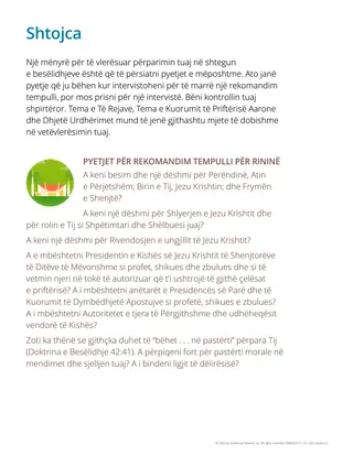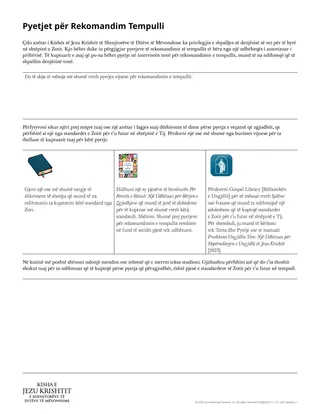 Kthehu te pyetjet për rekomandimin e tempullit që gjenden te shtojca e materialit Për Forcën e Rinisë: Një Udhëzues për Bërjen e Zgjedhjeve [2022] dhe bëj sa vijon: