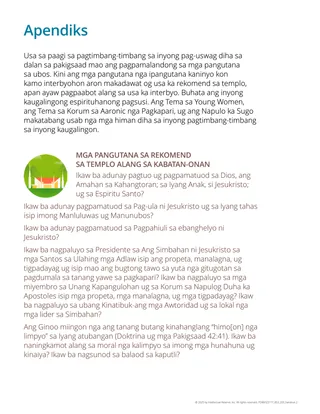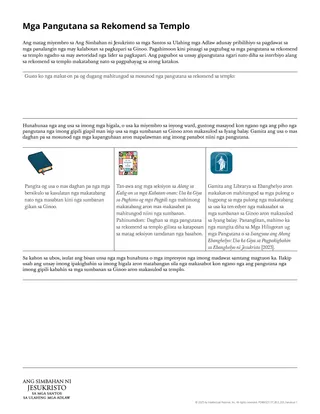 Paklia ngadto sa mga pangutana sa rekomend sa templo nga makita sa apendiks sa Alang sa Kalig-on sa mga Kabatan-onan: Usa ka Giya sa Paghimo og mga Pagpili [2022] ug buhata ang mosunod: