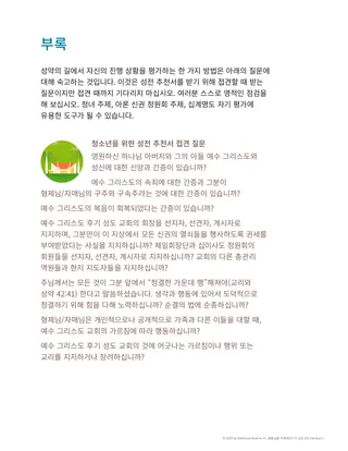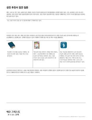 『청소년의 힘을 위하여: 선택을 위한 안내서』[2022]의 부록에 있는 성전 추천서 질문을 펴서 다음 활동을 한다.