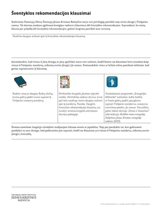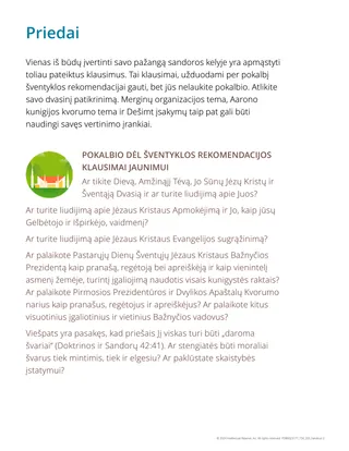 Raskite leidinio Jaunimo stiprybės vardan. Pasirinkimų vadovas [2022] priede pateiktus pokalbio dėl šventyklos rekomendacijos klausimus ir atlikite toliau nurodytas užduotis.