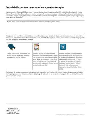 Deschide la întrebările pentru recomandarea pentru templu care se găsesc în anexa broșurii Pentru întărirea tineretului – Îndrumar pentru a face alegeri [2022] și fă cele de mai jos.